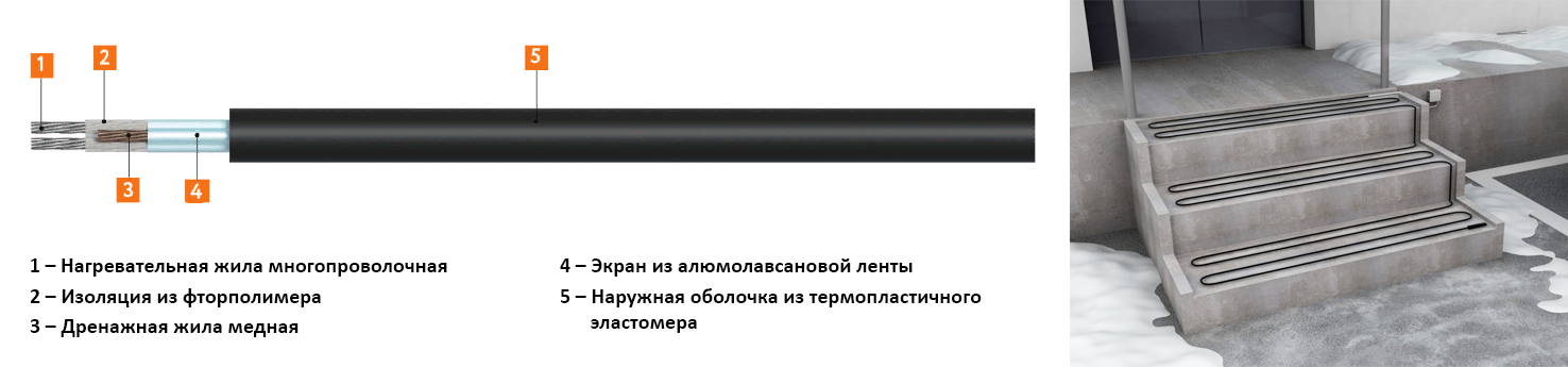 Резистивный кабель — имеет одинаковую мощность нагрева по всей длине. Регулирование мощности осуществляется с помощью термостата.