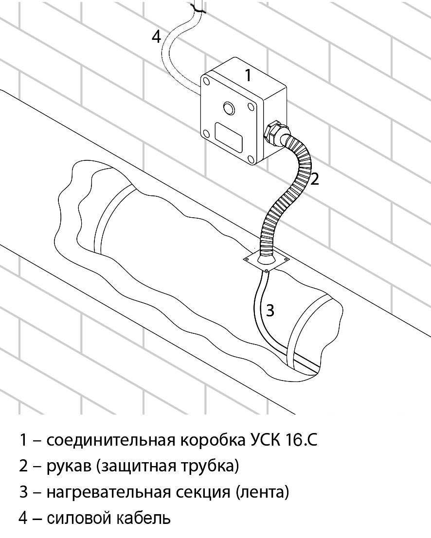 - Коробка позволяет выполнить подключение до 2 ниток саморегулирующегося нагревательного кабеля к силовому кабелю.