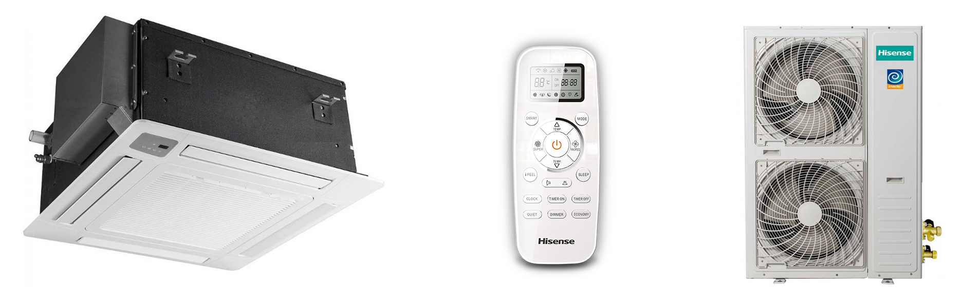 Инверторная кассетная сплит-система Hisense AUC-60UX4SFA/AUW-60U6SP1 рассчитана на работу в помещении площадью до 170 кв.м. Встраивается в подвесную потолочную конструкцию.