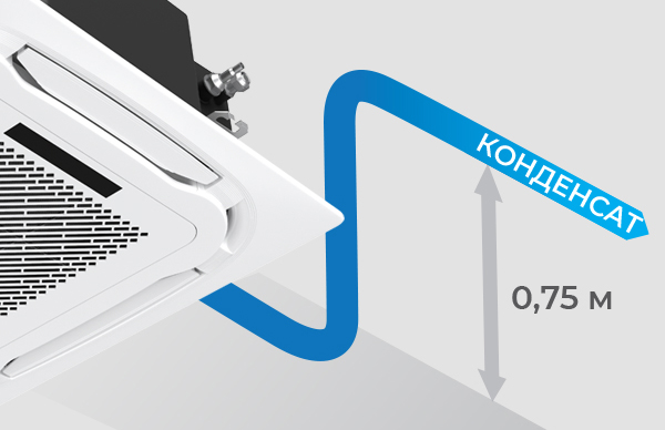 Встроенный дренажный насос эффективно справляется с отводом конденсата с теплообменника внутреннего блока.