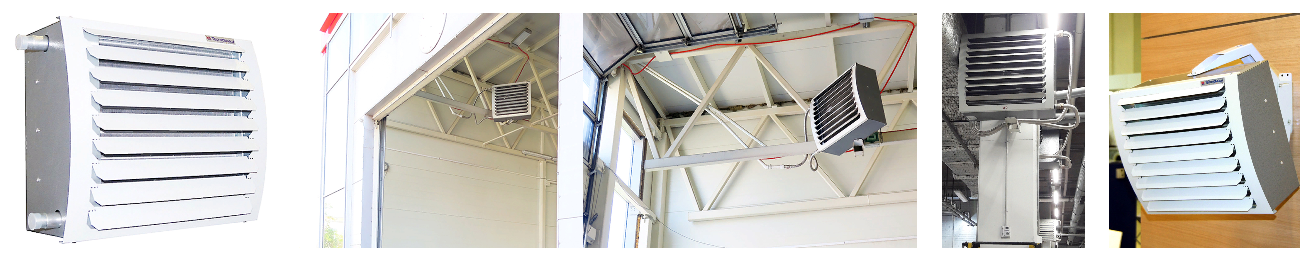 Тепловентиляторы с водяным источникам тепла применяются для основного или дополнительного обогрева помещений в промышленных, общественных и административных зданиях (магазины, стадионы, склады, ангары, автосервисы). Подключение производится к источнику отопления или системе ГВС. Способ монтажа горизонтальный или вертикальный — размещать можно как на стене, так и на потолке. Корпус выполнен из оцинкованной стали с полимерным покрытием серого цвета.